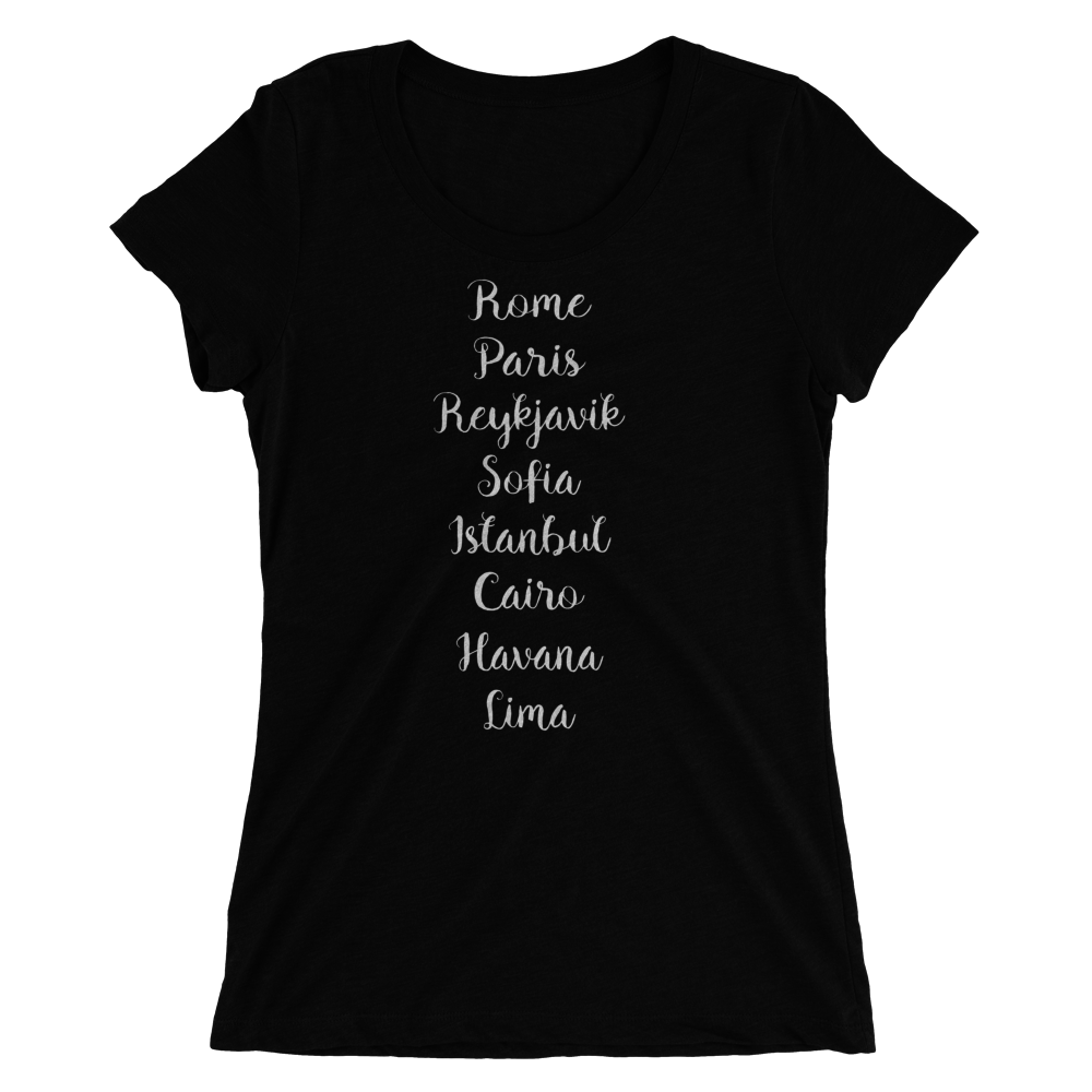 Celebrate your love of cities around the world with this comfy and stylish heather grey t-shirt.  This shirt will be sure to stoke your wanderlust or remind you of memories of trips from the past!