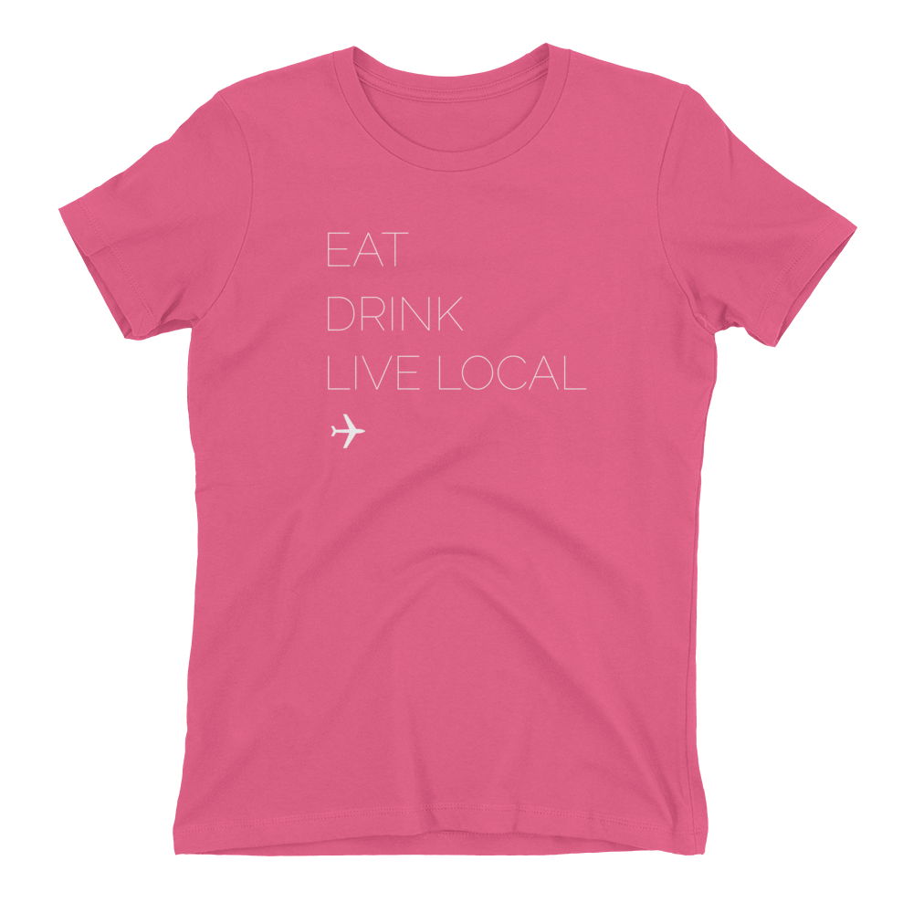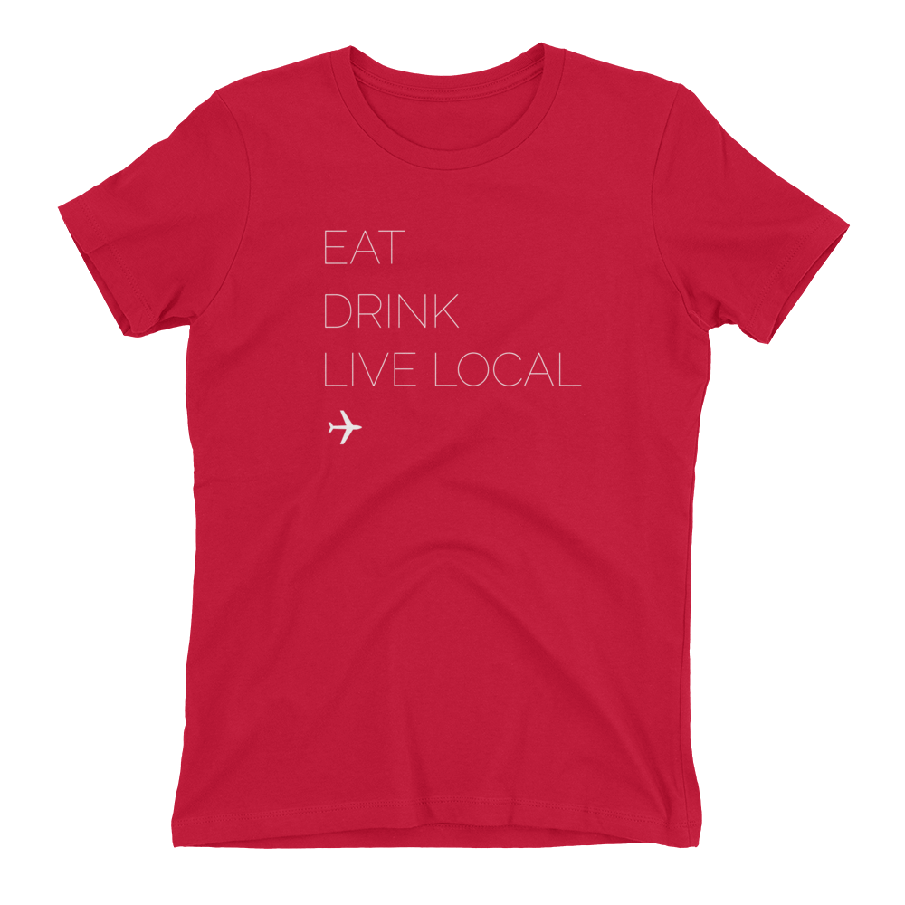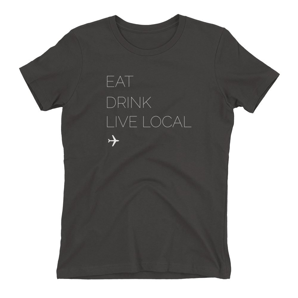 Be inspired to eat, drink and live local in this comfy t-shirt as you explore the world!  This lightweight, slim fitting, cotton t-shirt is perfect to throw in your bag for a weekend or even a couple of months away!